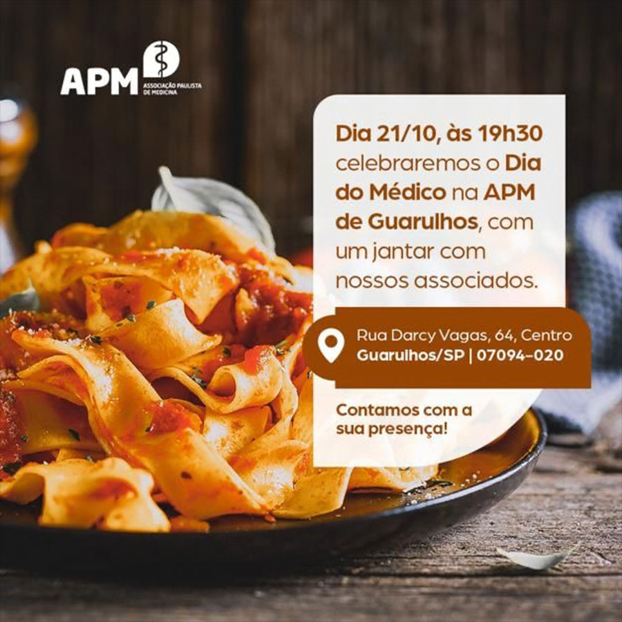 Dia 21/10 às 19h30, vamos realizar um jantar para comemorar o Dia do Médico na APM de Guarulhos